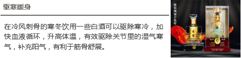 吸天地之靈氣,與自然之氣融為一體因此,在秋冬之寒適量的飲用白酒吸取來自大自然的釀造精華